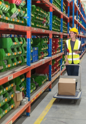 Movimentação com Equipamentos – Empilhadeiras e paleteiras são utilizadas para armazenar e retirar os paletes com agilidade.